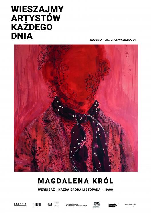 Magdalena Król – mieszka i maluje w Gdańsku. Jej obrazy skupiają się wokół tematu emocji, ich wpływu na człowieka i możliwości transformacji w wartości malarskie. Konsekwentny, choć ulegający nieustającej przemianie sposób wyrazu pozostaje bliski gestowi streeartowemu – pełen ekspresji i spontaniczny. Kolejna wystawa w Kolonii Artystów otwiera nowy cykl malarski po tym, który prezentowany był w Kolonii w roku 2017 (wystawa pt. „Bezsenność”), a kontynuowany był podczas pokazów w Sztuce Wyboru (wystawa pt. „Antrakt”, 2017) oraz Gdańskim Teatrze Szekspirowskim („Puenta w foyer”, 2018). Członek gdyńskiego stowarzyszenia HALO kultura. www.magdalenakrol.pl