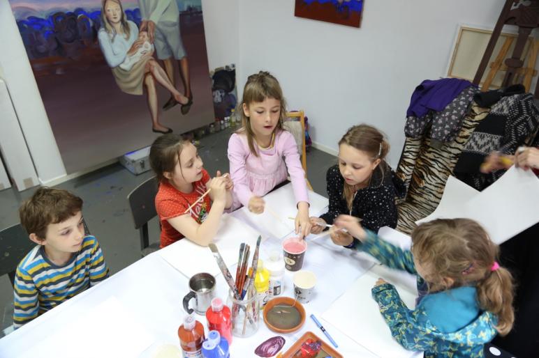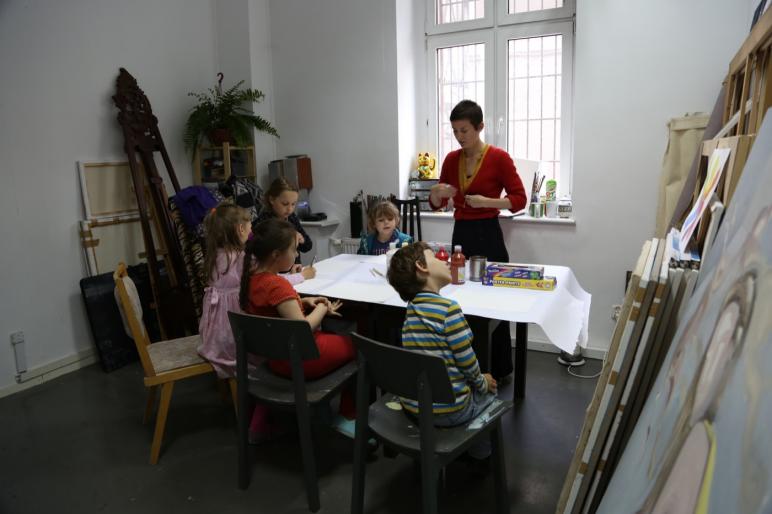 Spotkania będą odbywały się w pracowni malarskiej co dla dzieci jest dodatkowym bodźcem poznawczym i pozwala na bezpośredni kontakt z procesem tworzenia.